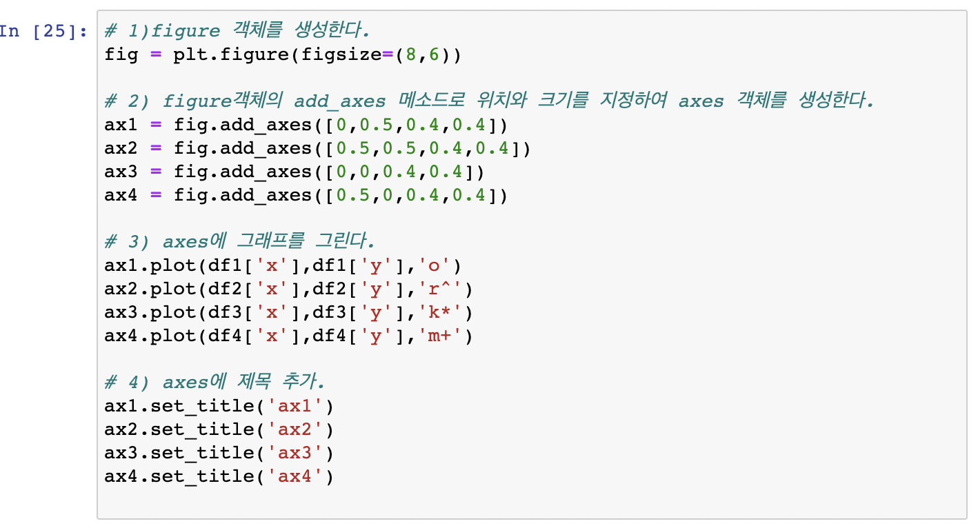 ② figure객체의 add_axes 메소드로 위치와 크기를 지정하여 axes 객체를 생성한다.