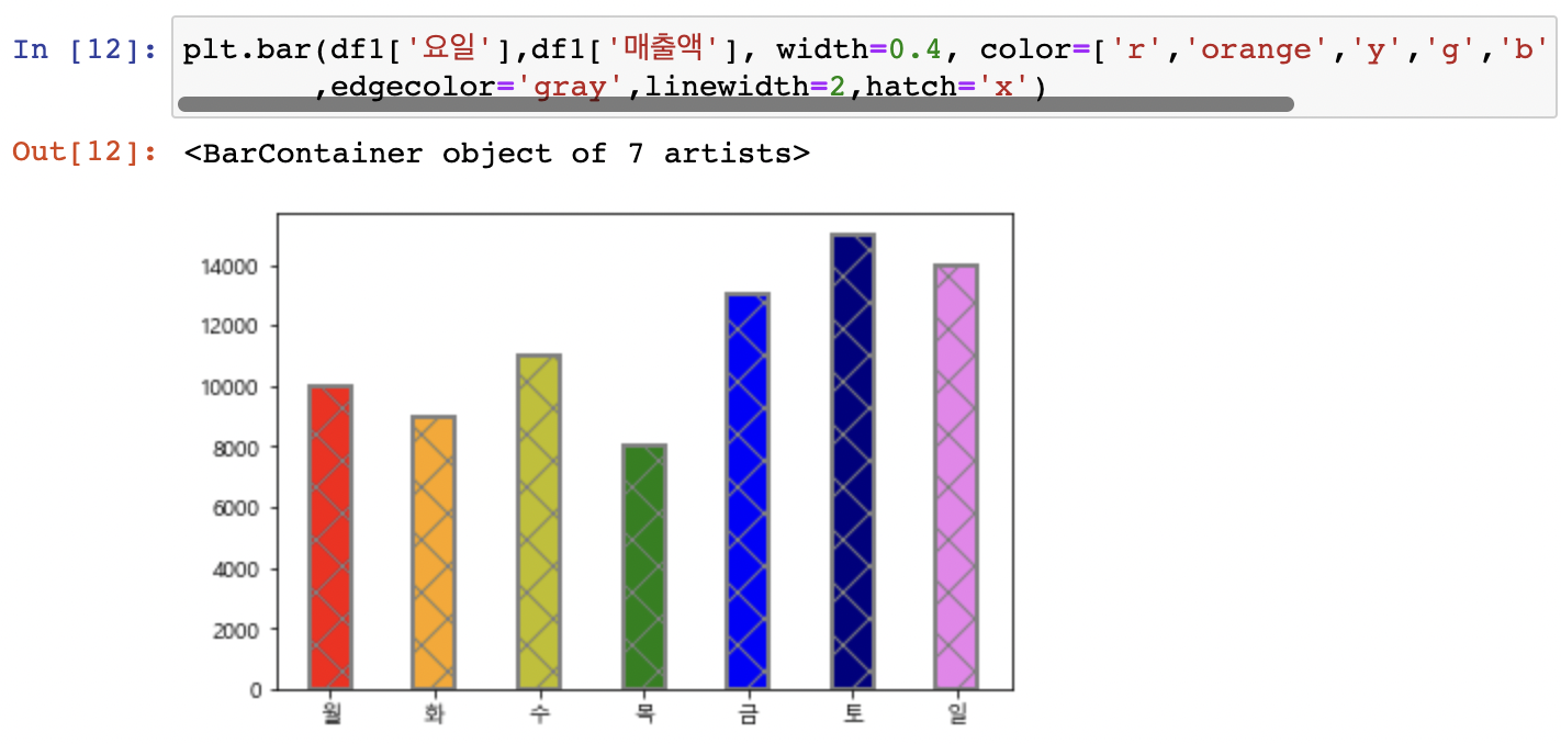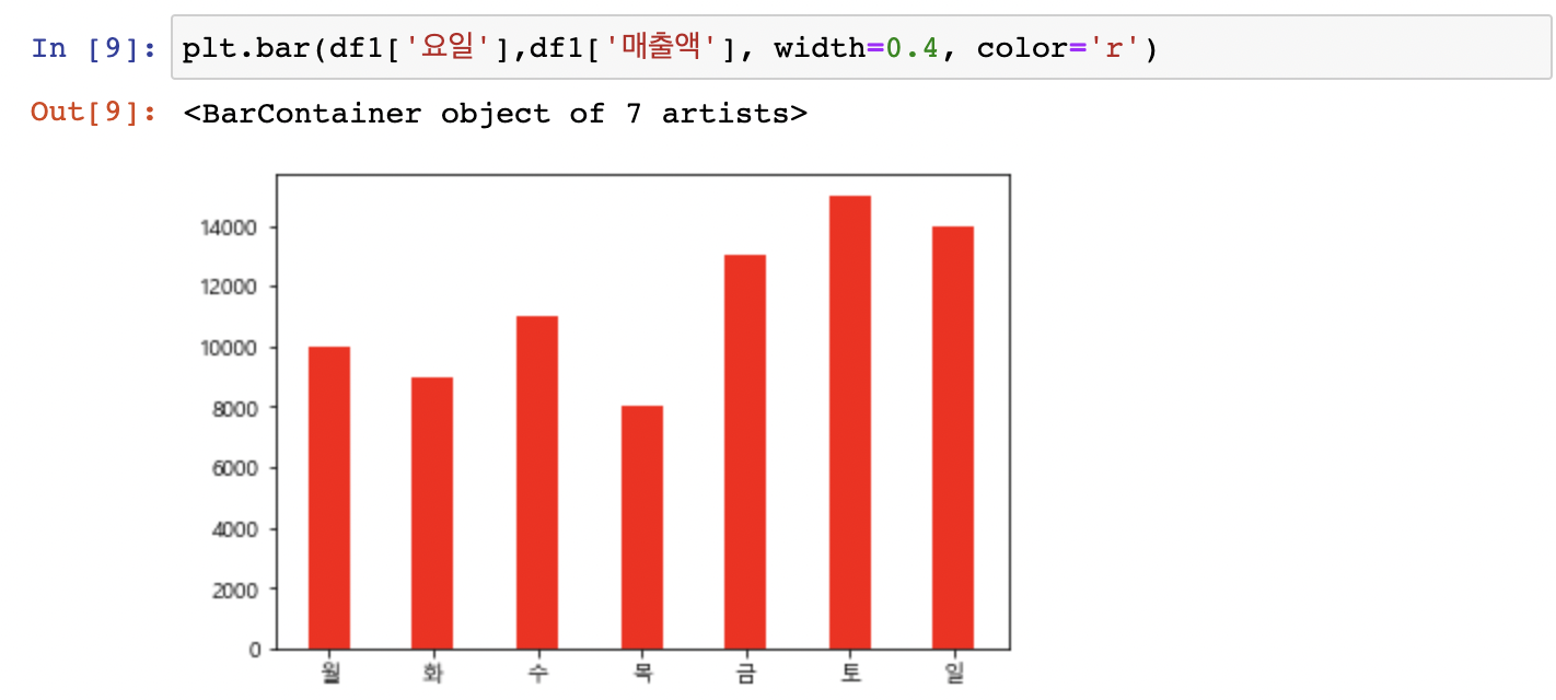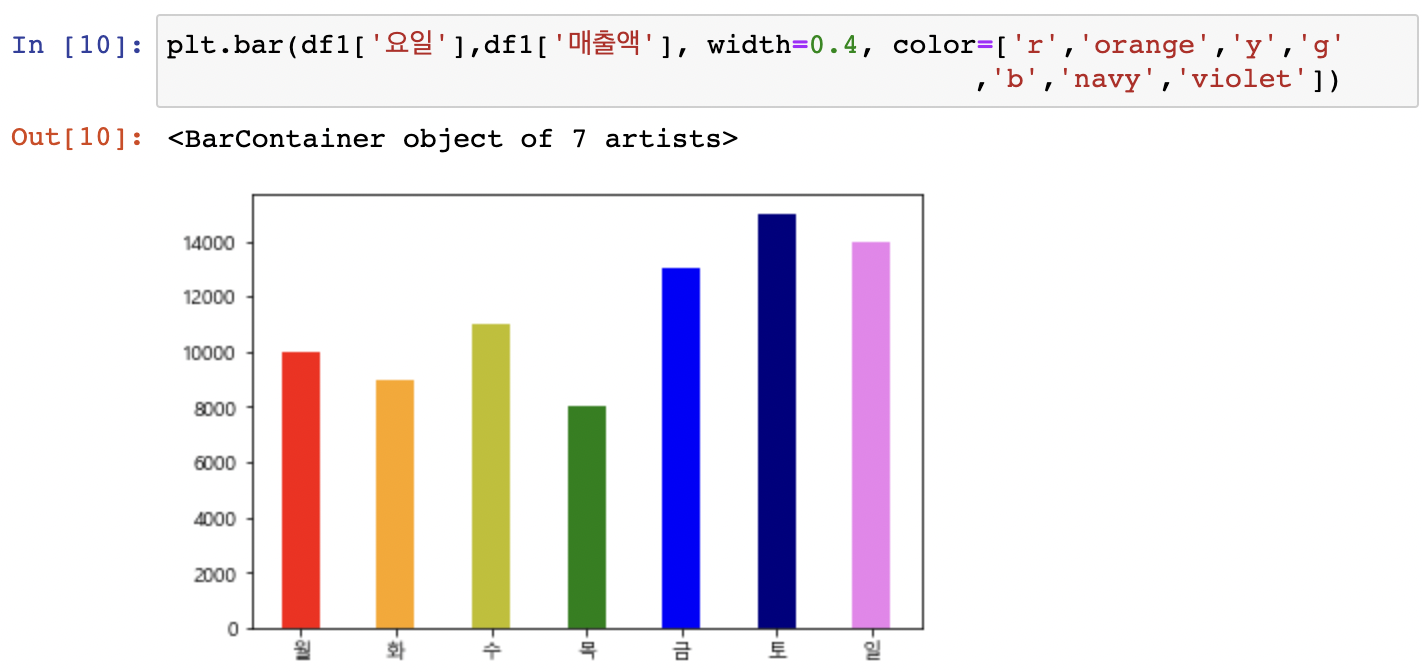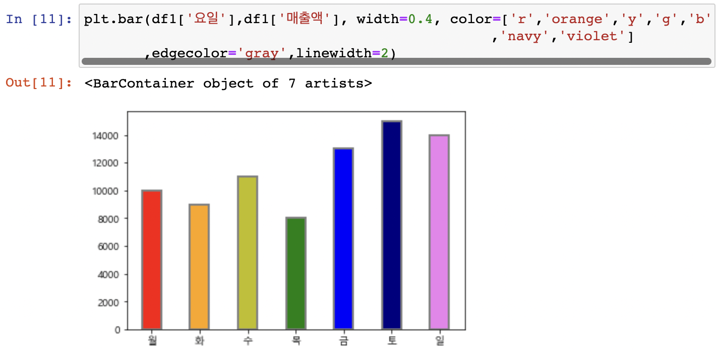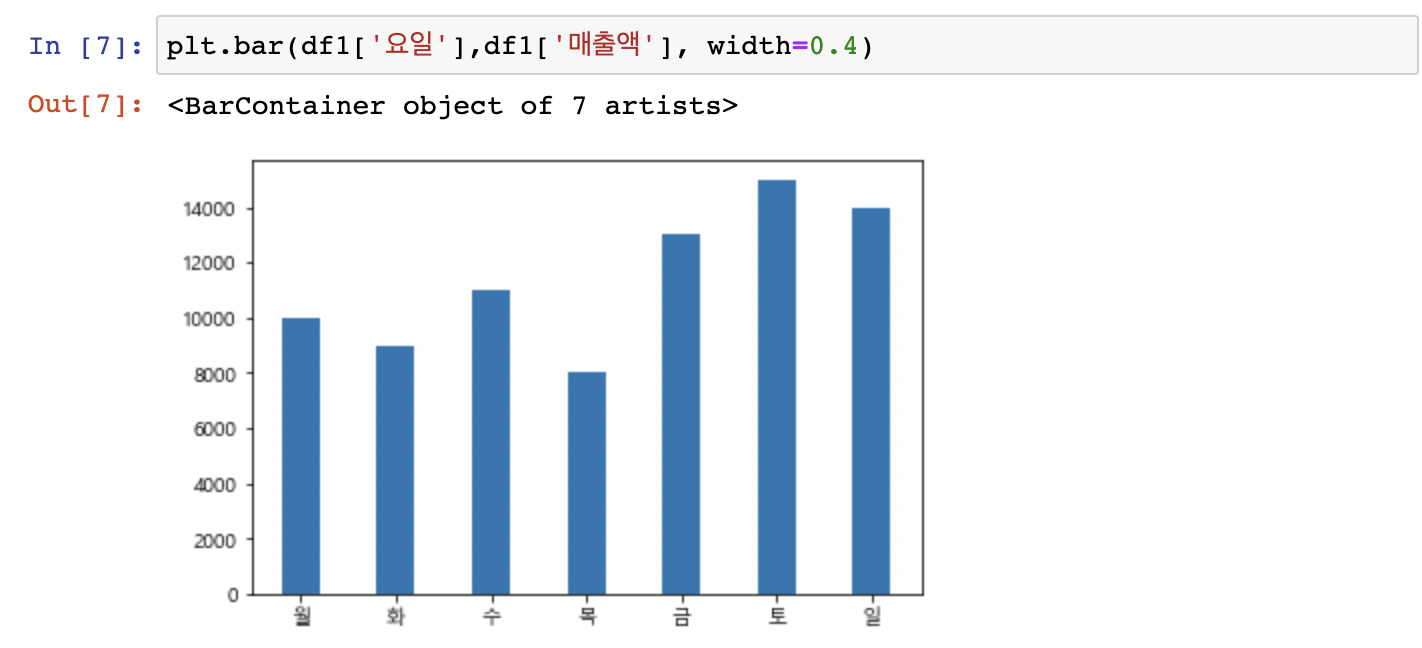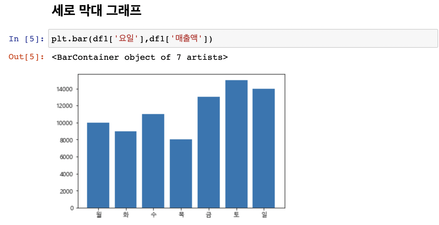 plt.bar(x축데이터,y축데이터)