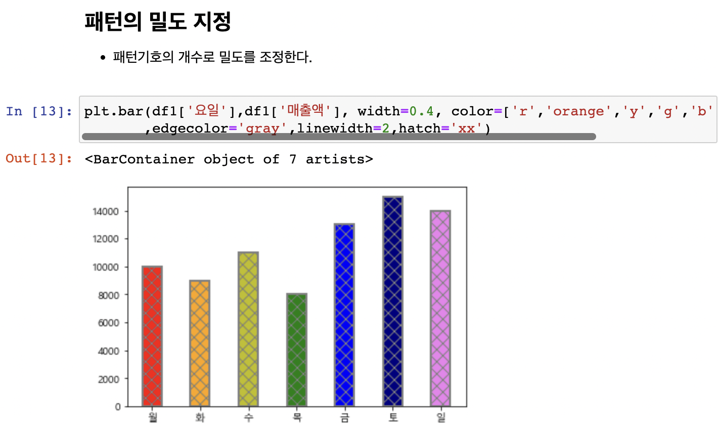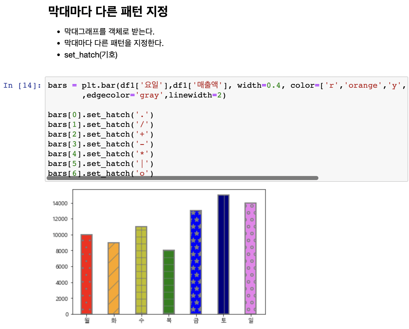 hatch 파라미터에 기호 전달 : '/', '', '|', '-', '+', 'x', 'o', 'O', '.', '*'