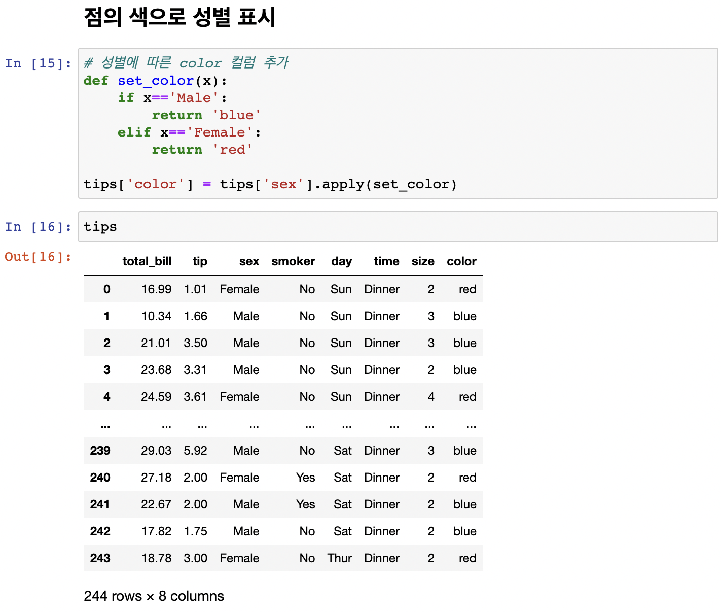 점 색상은 공통된 색상으로 지정할 수도 있고, 점마다 다른 색상으로 지정할 수도 있다.