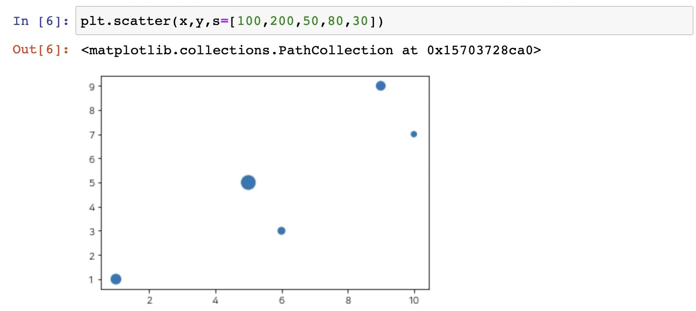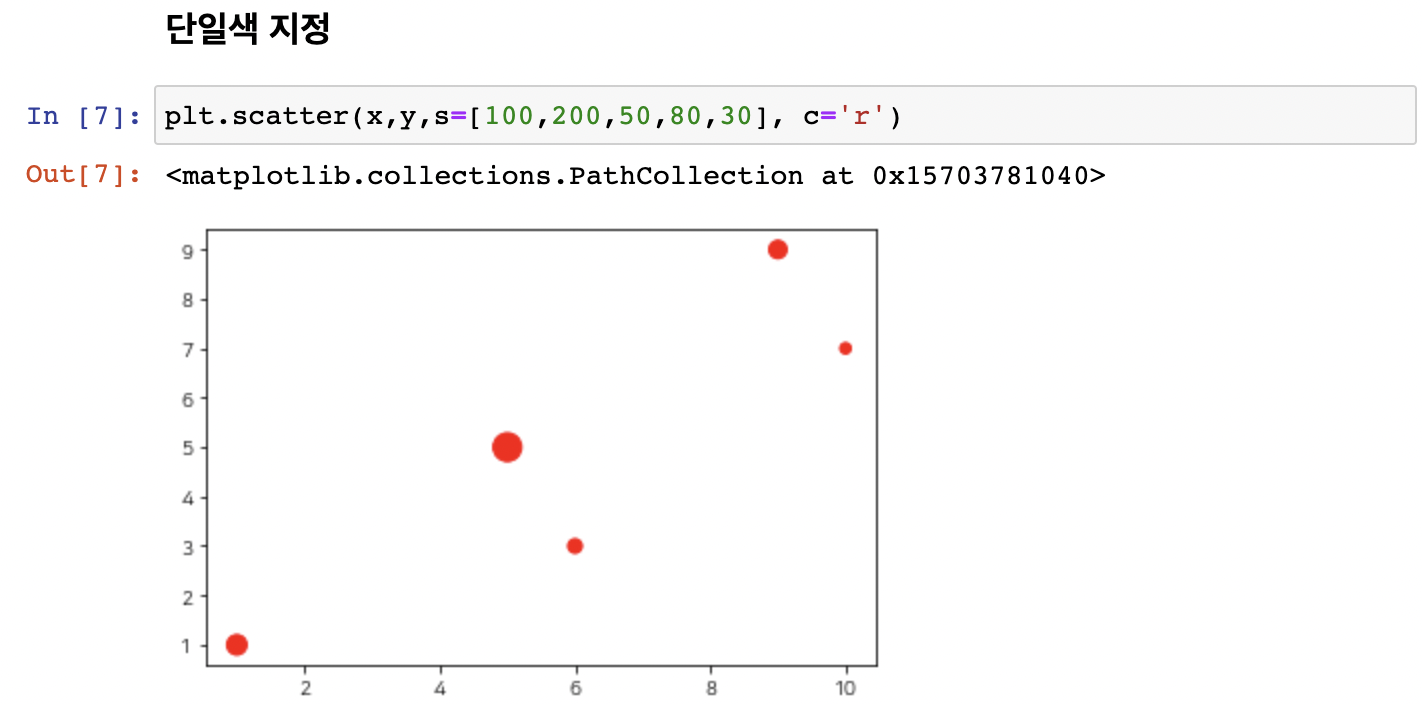 plt.scatter()의 파라미터 s로 점 크기를 지정한다.