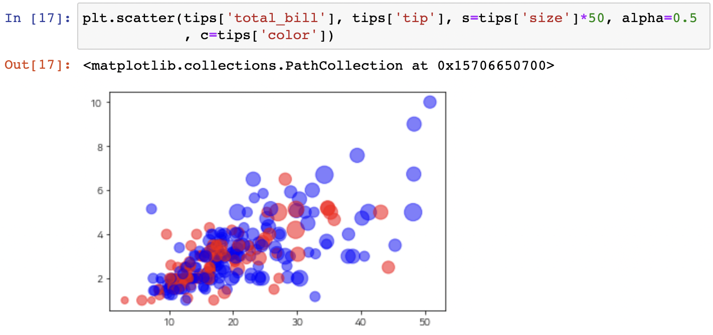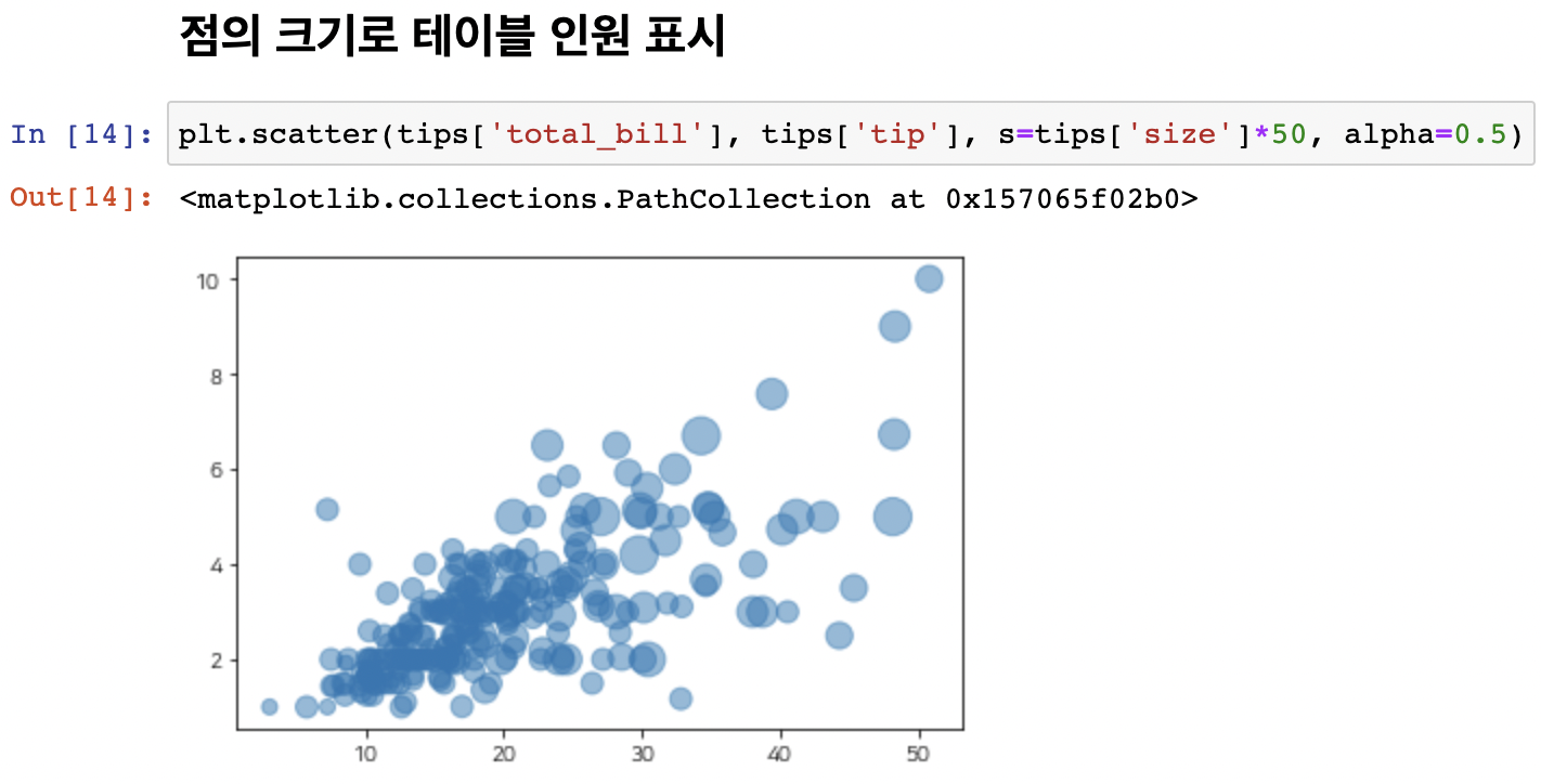 점의 크기, 색깔로 정보를 표현할 수 있다. (버블차트)