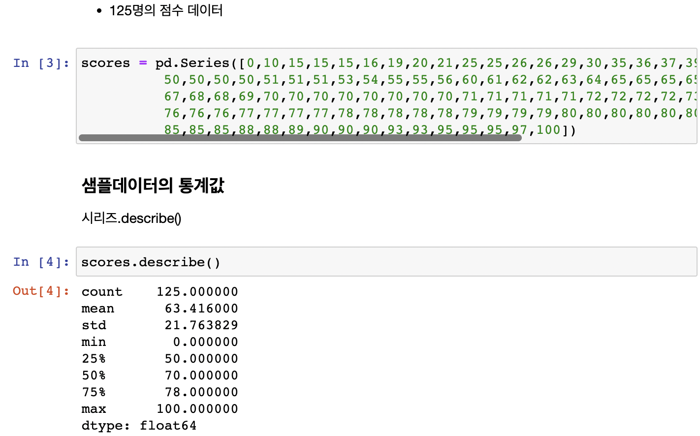 · 제 3사분위 수 (Q3) : 전체 데이터 중 상위 25%에 해당하는 값