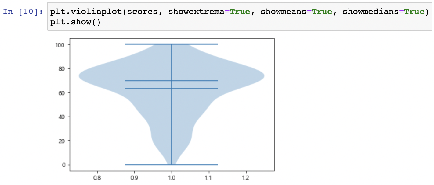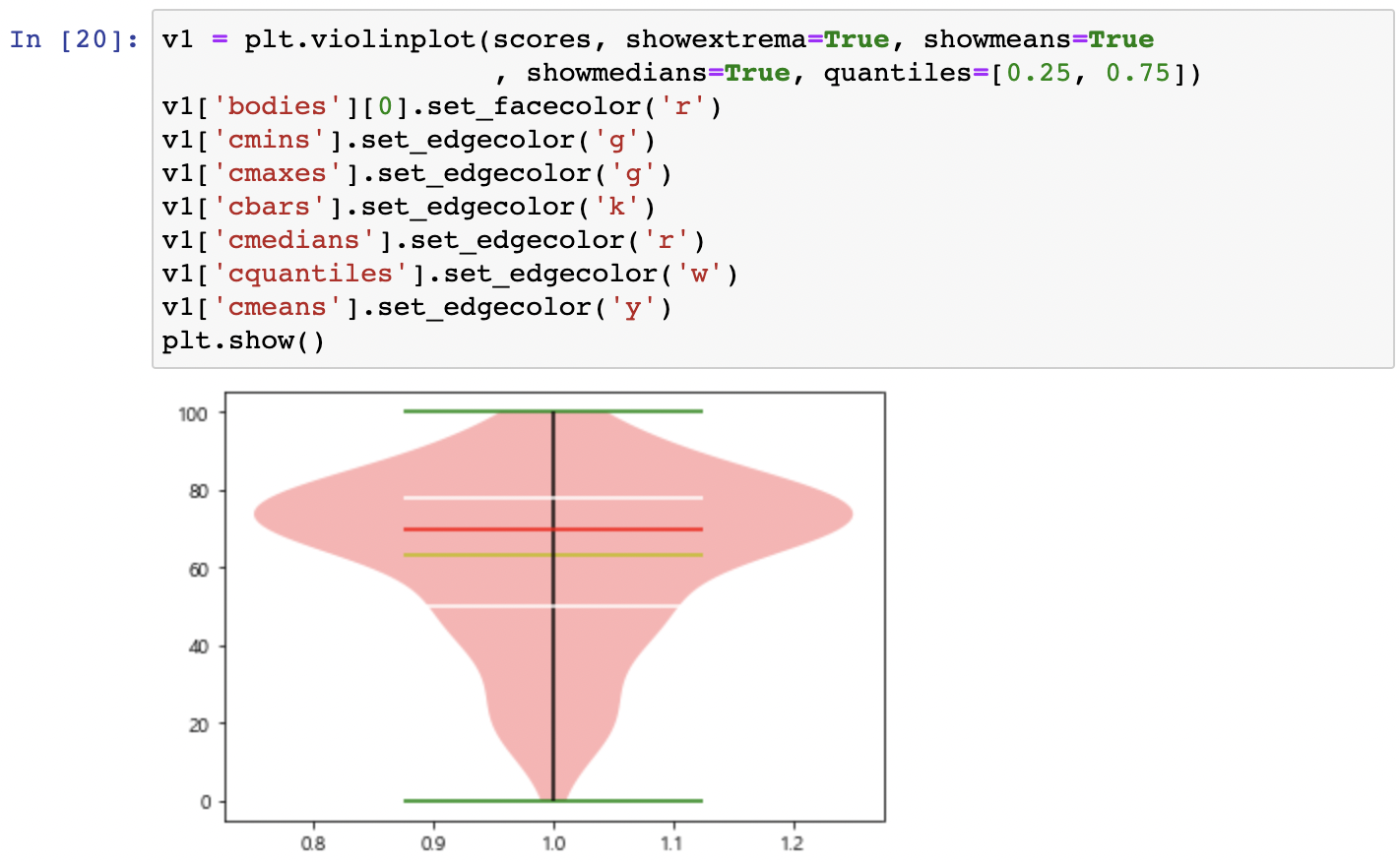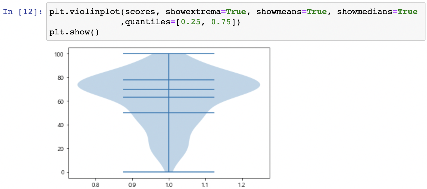 · showmedians=True/False : 중간값에 직선 표시(default:False)
