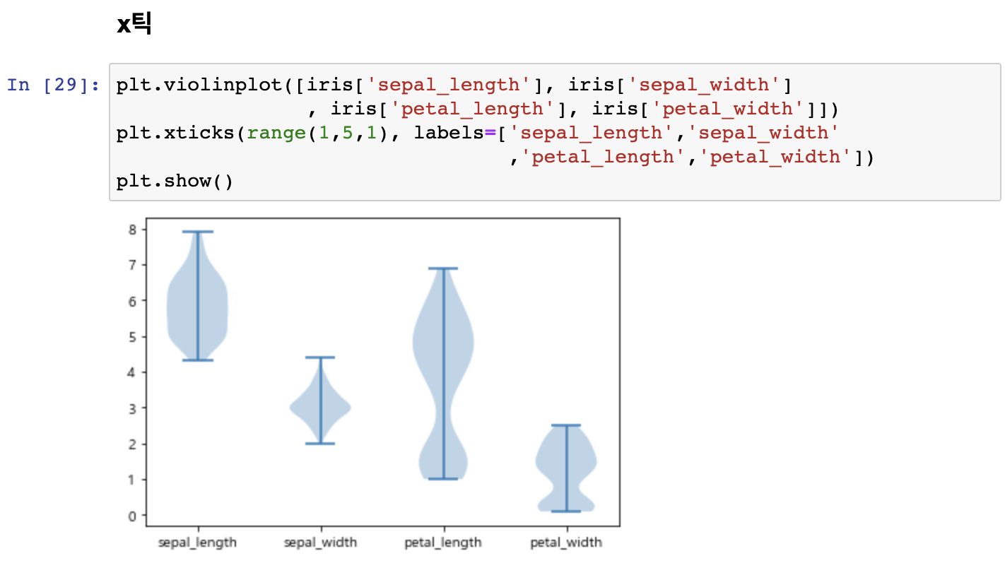 · 플롯['bodies'][인덱스].set_facecolor(컬러)